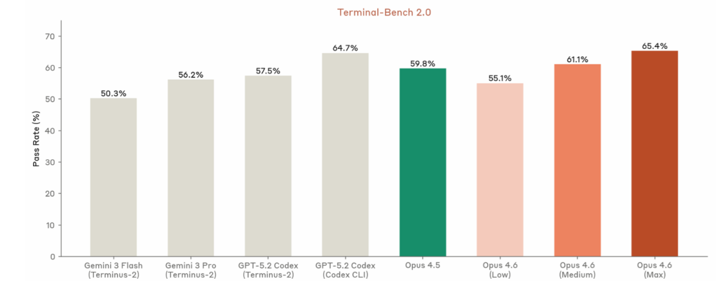 Below is Anthropic’s Terminal Bench 2.0 Rating of 65.4%