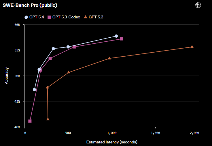 For Coding, they also shared their SWE-Bench Pro (public) Accuracy vs Latency Benchmarks: