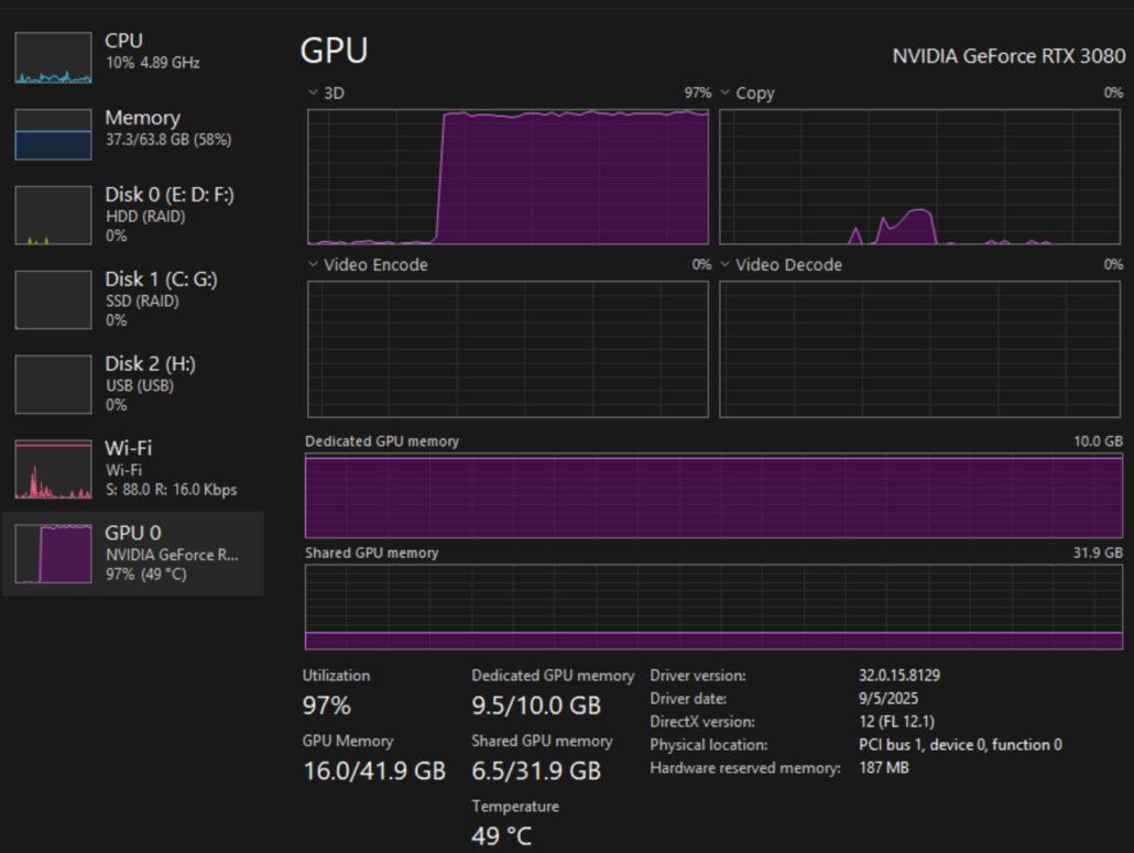 Below you can see the Task Manager Performance Chart for my NVIDIA GeForce RTX 3080;
